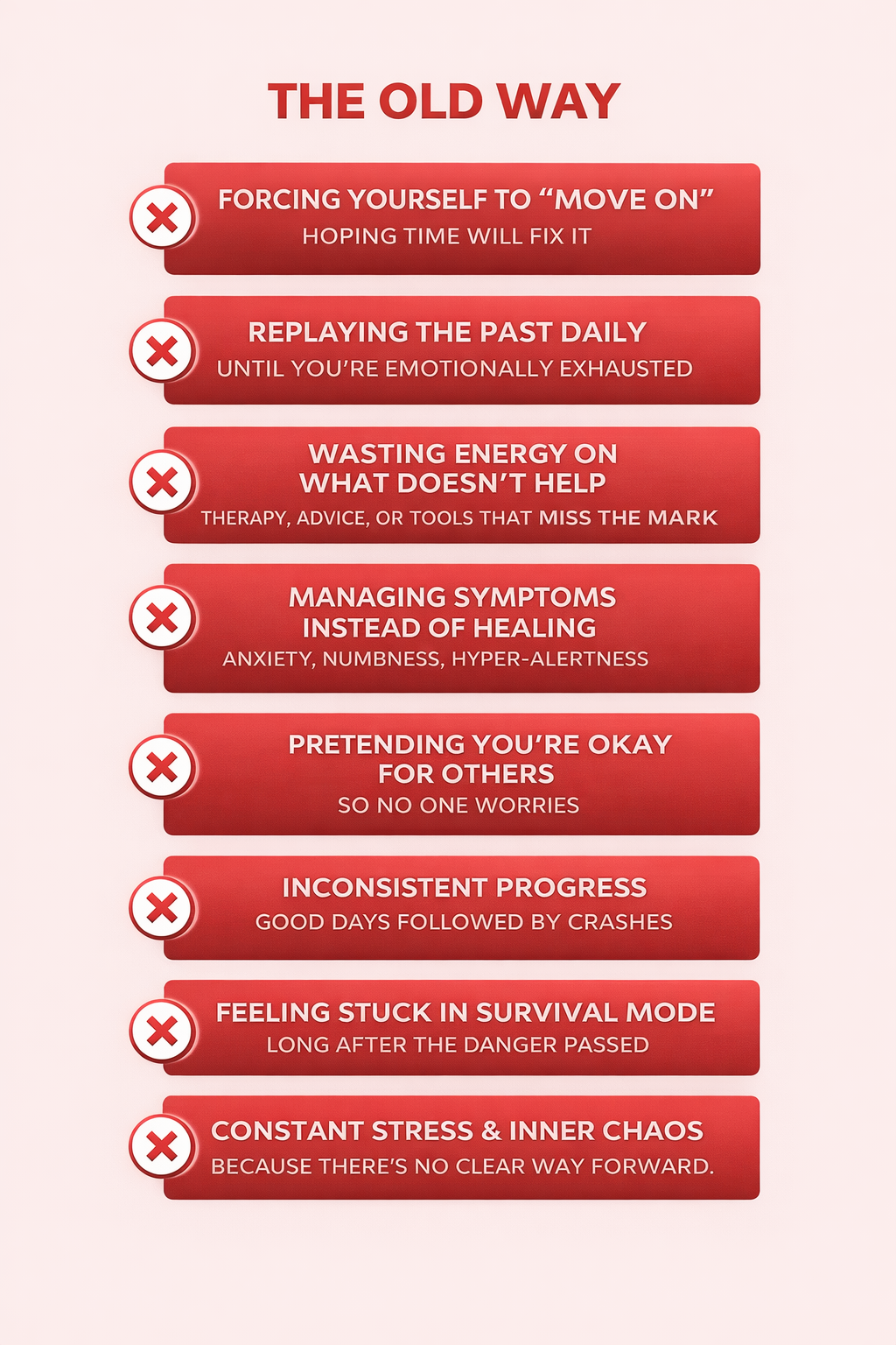 In short: this isn’t about fixing you or reliving what happened. It’s a clear system for finishing what survival started-so progress sticks instead of collapsing the next time life gets hard.