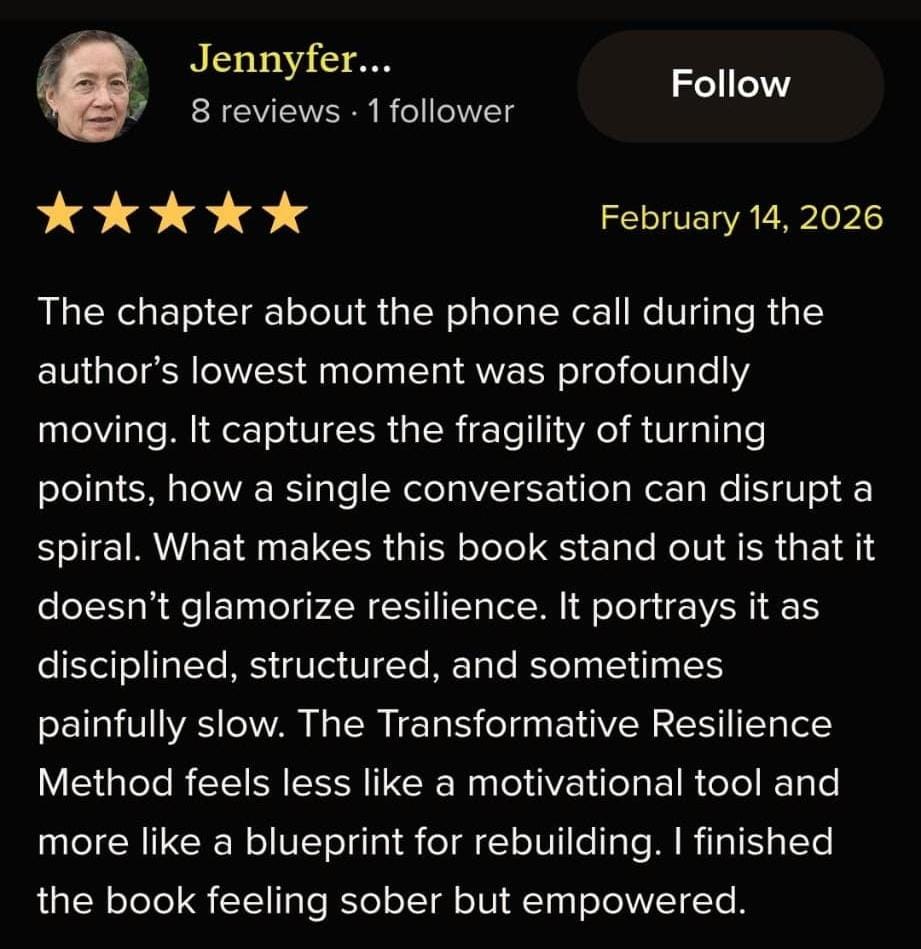 The Transformative Resilience Methodology (TRM™) is a practical, experience-tested system designed to help people move forward after trauma, fracture, disruption, or prolonged stress, without reliving the past or forcing healing. It works by stabilizing the nervous system first, restoring inner authority next, and then building steady forward momentum through simple, repeatable actions. The result is sustainable progress: less spiraling, clearer decisions, and a life that moves forward calmly and on purpose, even when motivation is low.