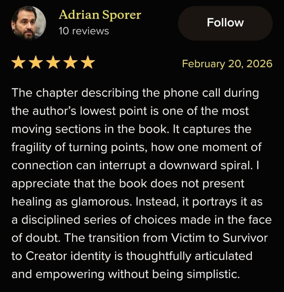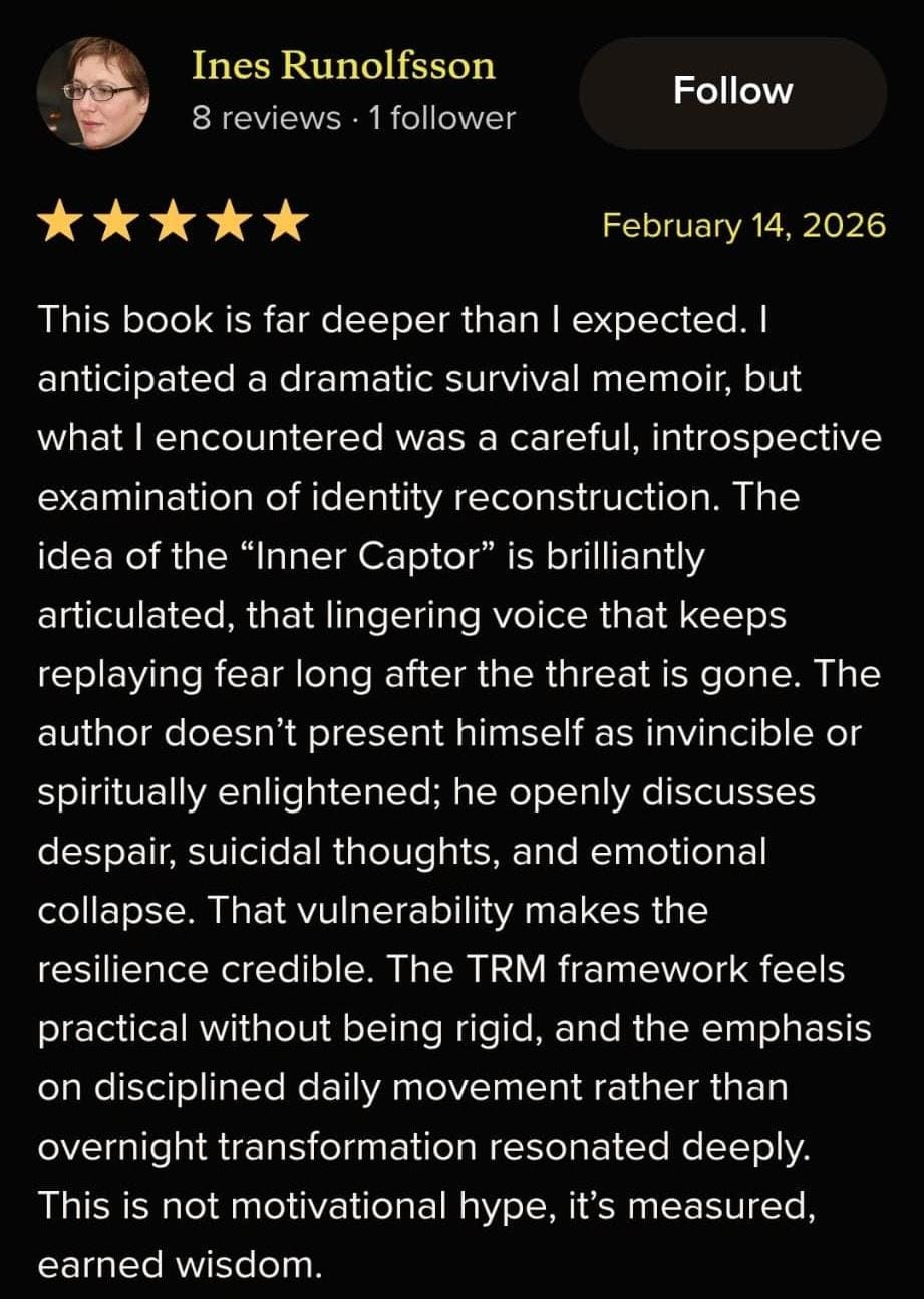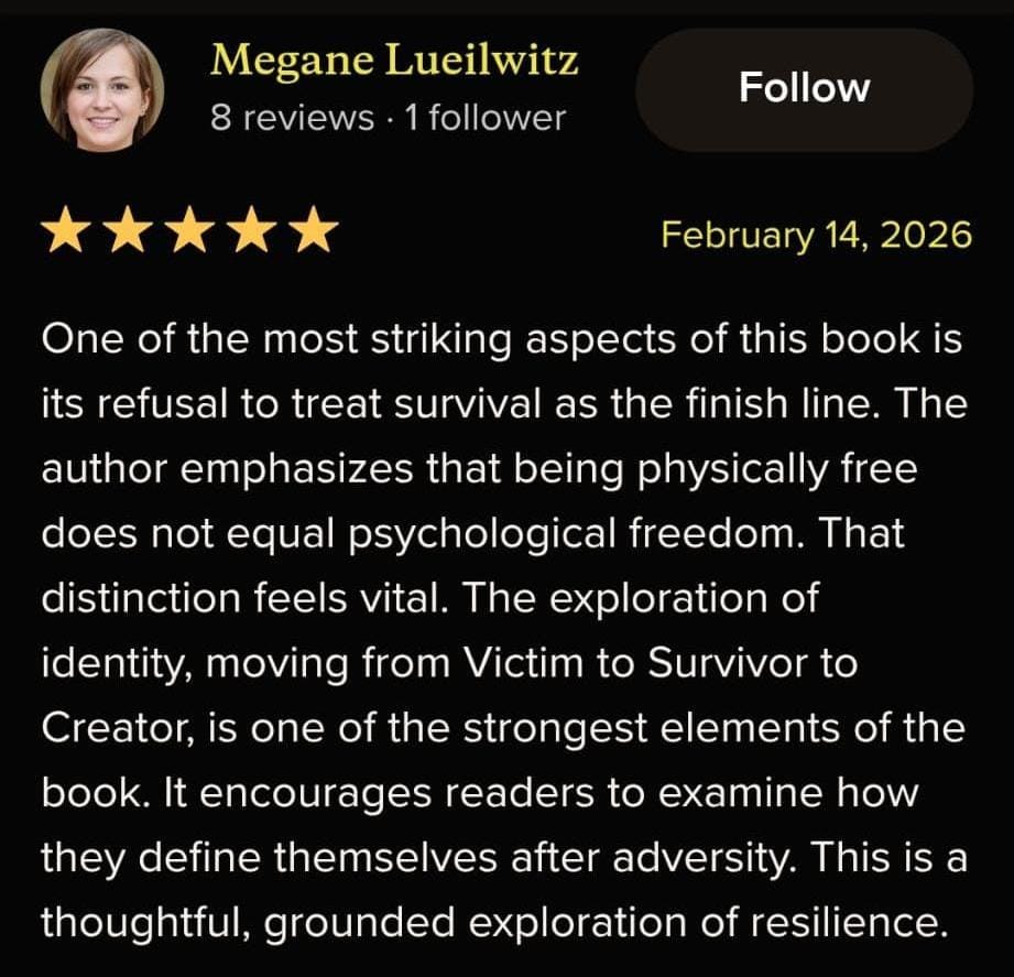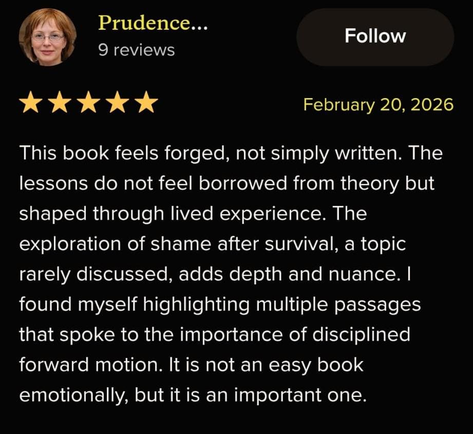 Is for survivors who are done coping and ready to move again. Inside, you'll discover a clear, counterintuitive system to shut down survival mode, reclaim inner authority, build real forward momentum without reliving the past or forcing healing. It's practical, ground, and designed to help you feel steady, clear, and in control faster than you thought possible.