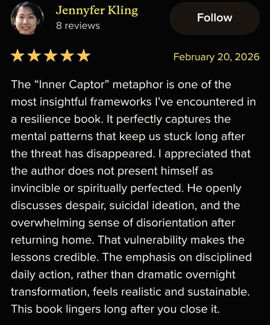 This book shows you how to stop surviving on auto pilot and reclaim inner authority after trauma, disruption, burnout, betrayal or loss, without denying what you've through. You'll learn practical, grounded strategies to interrupt survival mode, dismantle the Inner Captor, rebuild direction with purpose and momentum.
